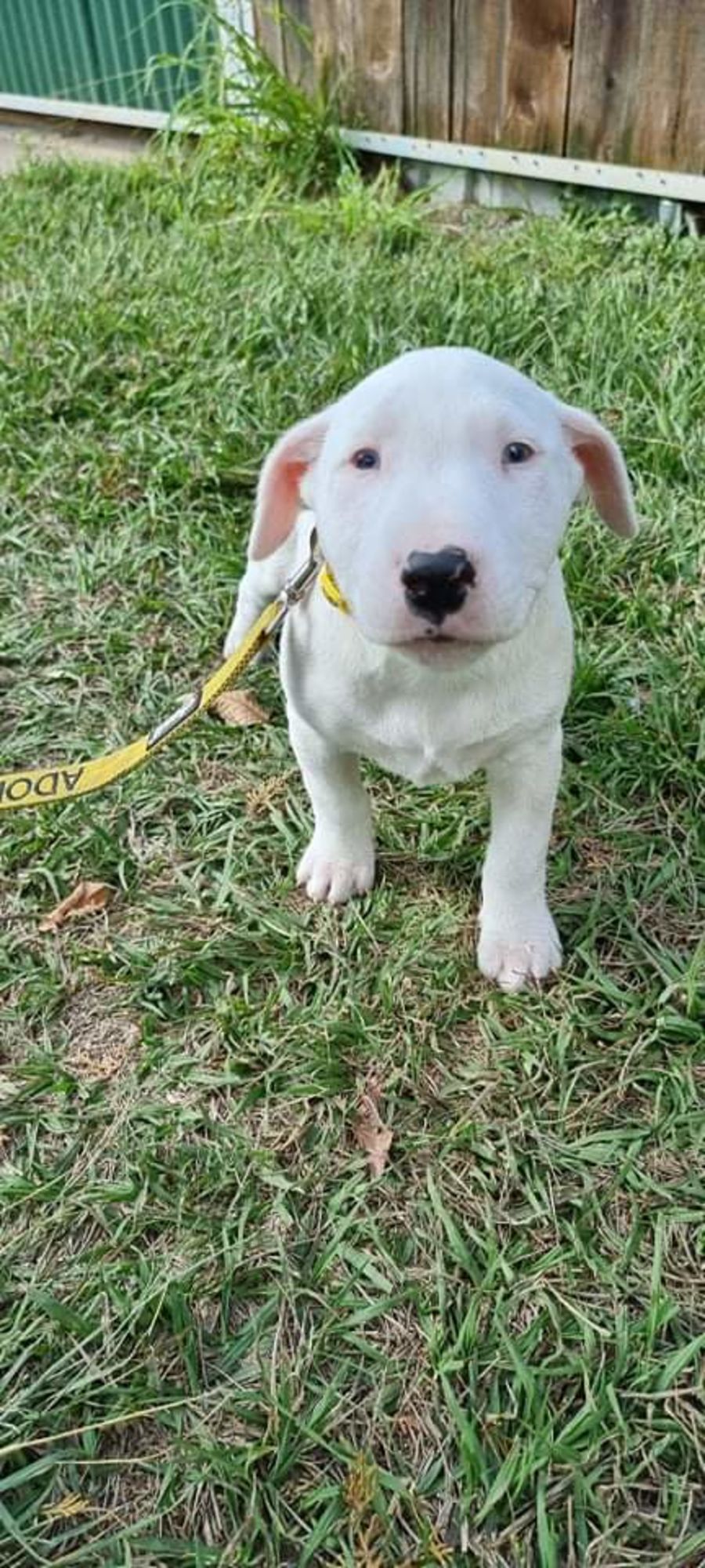 As can see I am a young Bull Terrier x pup with the most amazing blue eyes. My foster hoomans describe me as sweet little lady who has lots of love to give and of course is known to get into mischief. I love to sleep by my fosters feet or snuggle beside them on the lounge while getting belly rubs. I love to play with my soft squeaky toys and to annoy and play with my foster fur brothers.