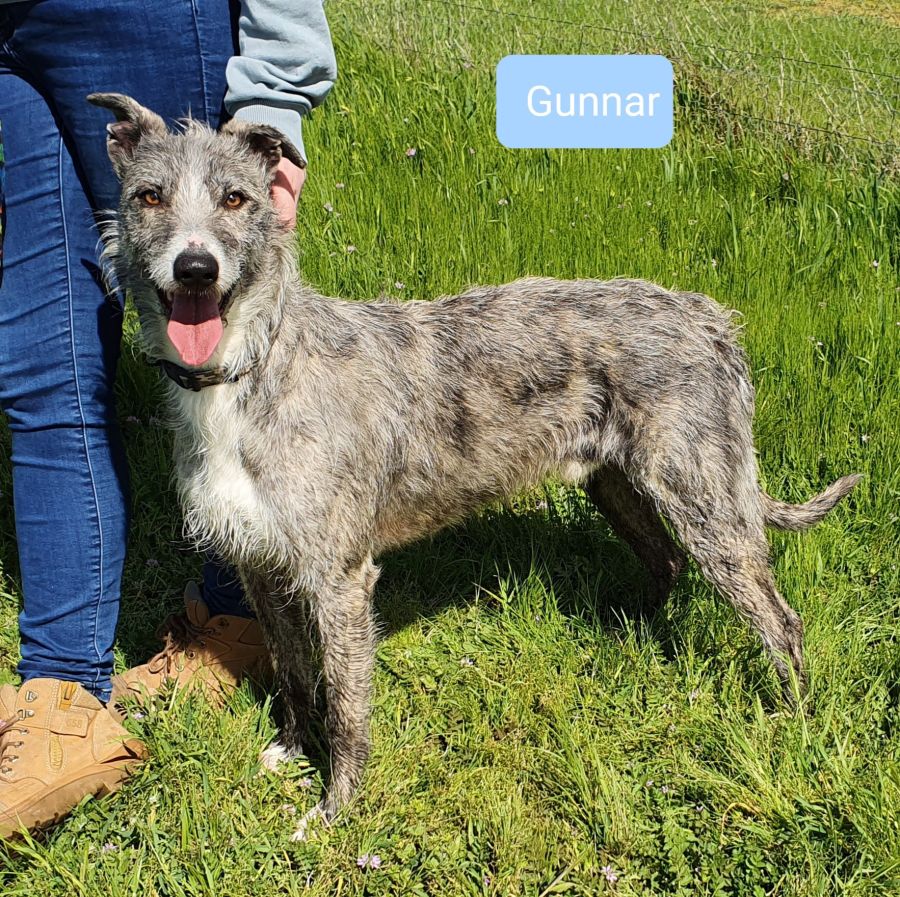 Our active, quirky and loving boy Gunnar is looking for a home with another dog. Gunnar is in foster care with another active desexed male dog and they play well together.