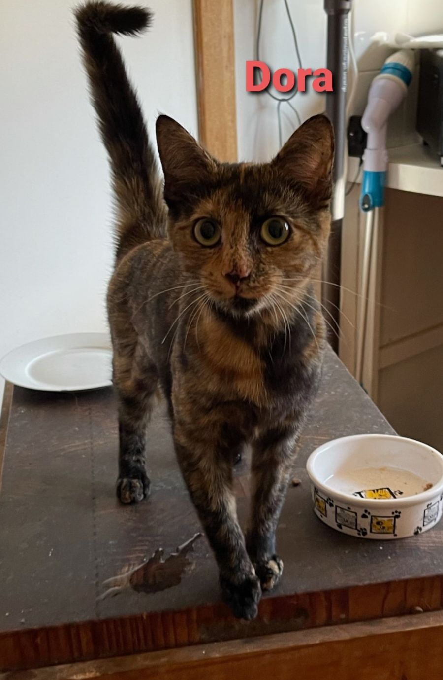 Dora our 7 month old Torti girl is ready to start looking for a loving quiet home. Dora likes the quiet life so would not suit a home with children. She is currently in foster care with a child free home with two adults and she copes with this and shows affection towards her foster carers. She is slowly building her confidence in that environment.
