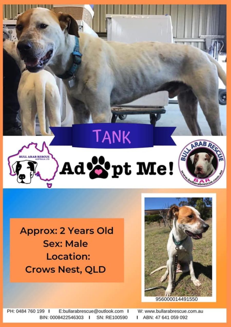 If you think you can give Tank the love and care he deserves please email bullarabrescue@outlook.com