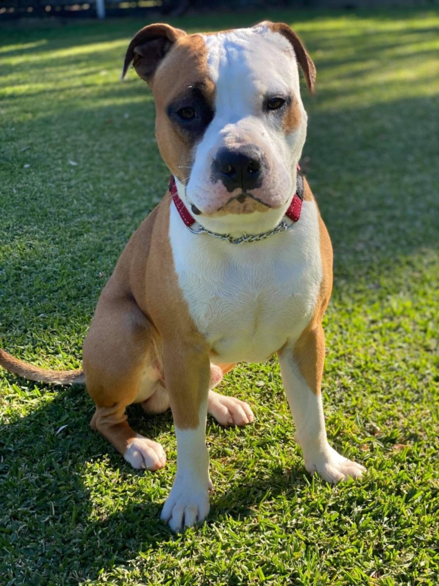 He’s a chunky bulldog x American staffy so has a solid frame and loves to wrestle and play tug a war.