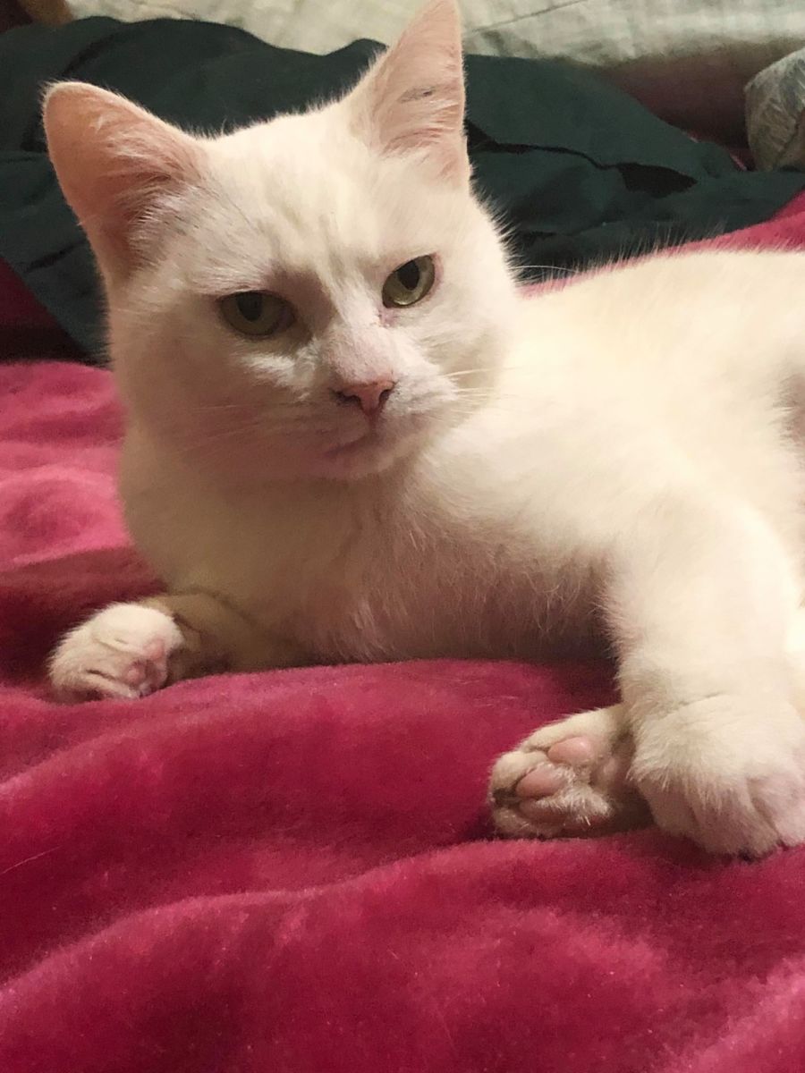 Whitey would best suit a quiet household to slowly explore in her own time. She is best as an only cat, no indoor dogs, and no small children that may startle her.