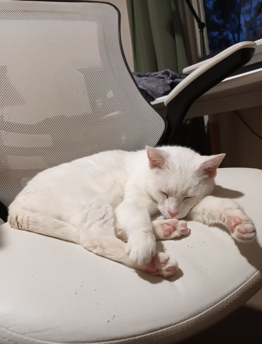 Snowy is an affectionate, loving boy who loves pats and attention. He is a purr factory who loves a belly rub and while he isn’t a lap cat, he does love to snuggle up next to or between people and has been known to spoon for an early morning cuddle!! He has displayed a playful, goofball side which will shine through once he has been able to relax in his forever home. He has plenty of energy and would love to be able to access the outside via a cat window tunnel to an outdoor cattery or a home with climbing structures.