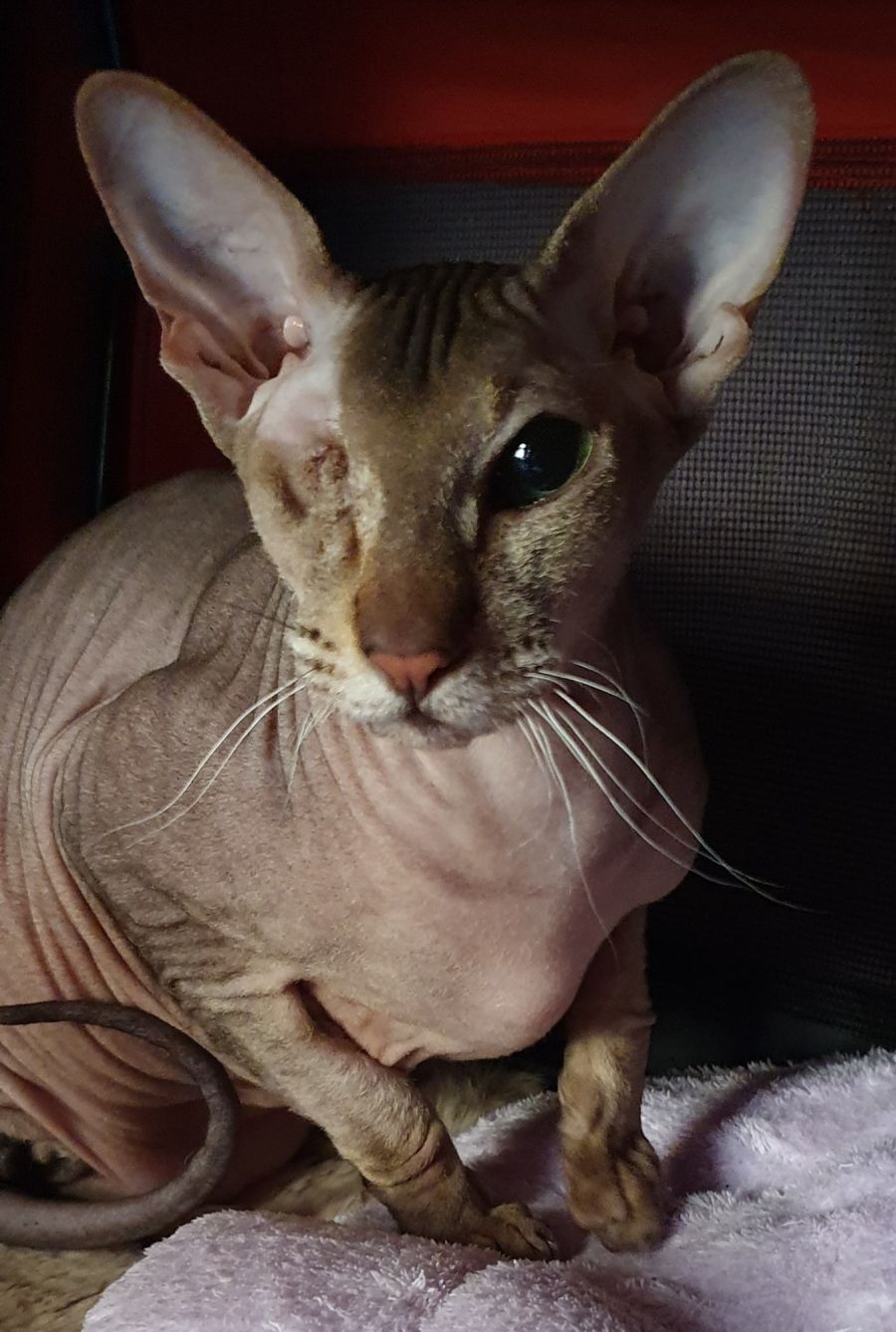 Anastasia our Peterbald (not a sphynx) is now ready to find that Purrfect Home.