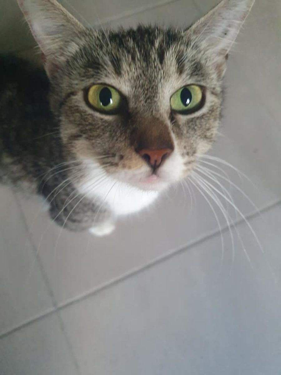 Muma has had a rough start to life. Found on the streets with her 4 little babies she was fiercely protective of them and a fantastic mother. Slowly but surely she is becoming affectionate on her own terms. She is food driven but always wants to know where you are and will follow you around the house. Muma is very talkative, when she meows it sounds like she's saying "mum-a" hence her name. She needs someone gentle with no other cats to love her and help her realise she is safe now.