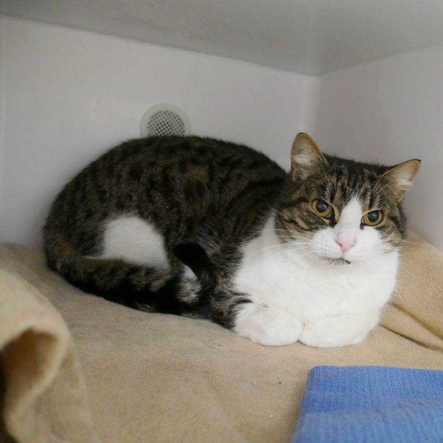 Dolly is a sweetheart who is shy meeting new people and in new surroundings. With some gentle encouragement it does not take long for Dolly to be purring away, having a cuddle or a bit of a chat with you.