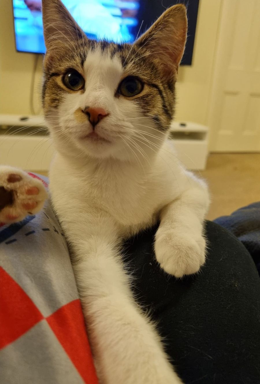 CC is needy of attention and is looking for someone who will be around to give her what she desperately seeks, she is very playful (she is still a kitten after all) and will happily play with you when you're not having cuddles! She would be fine with someone who worked full time if you had another cat mate at home to keep her company whilst you are out.