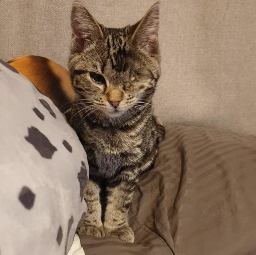 Chai and her brother have had a rough start to life, both kittens came to us at the age of 6 weeks old with severe cat flu that caused horrible infection in both their eyes. Sadly both kittens have had to have their left eye removed because of this.
