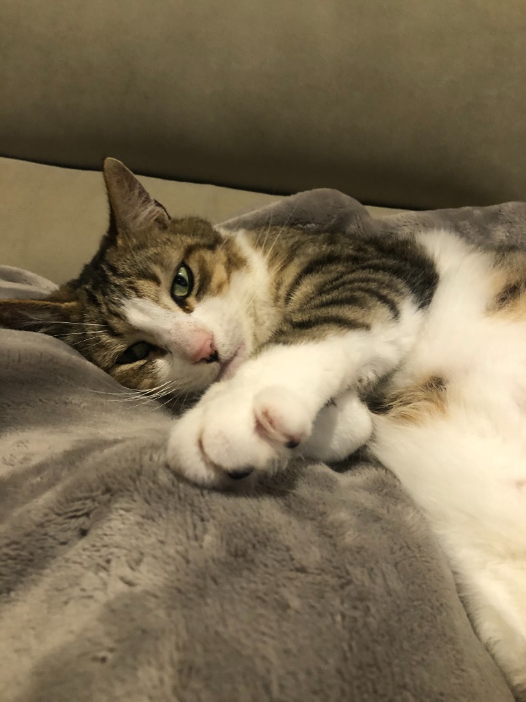 The carer told me he was very affectionate and loving and she was not wrong. I went to meet him in Toodyay and he was of course shy at first like most cats and cried all the way home. Hid in our laundry cupboard for a few days (we have a dog who was very interested to meet him) but within days he was out and about snuggling, purring and LOVES belly rubs. He will also hug your finger with his paw. He will sometimes play and cuddle with our dog. I’ve had cats all my life and he is one of the most affectionate and easy-going cats I’ve ever known.