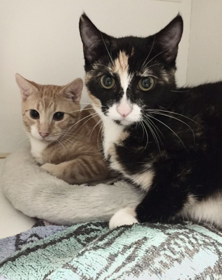 Maddy (calico) is an independent little madam. She demands attention & is very cheeky! She always lets you know when she needs something and when she’s not running amuck with Matt, she loves to watch the birds outside or cuddle up on the couch.
