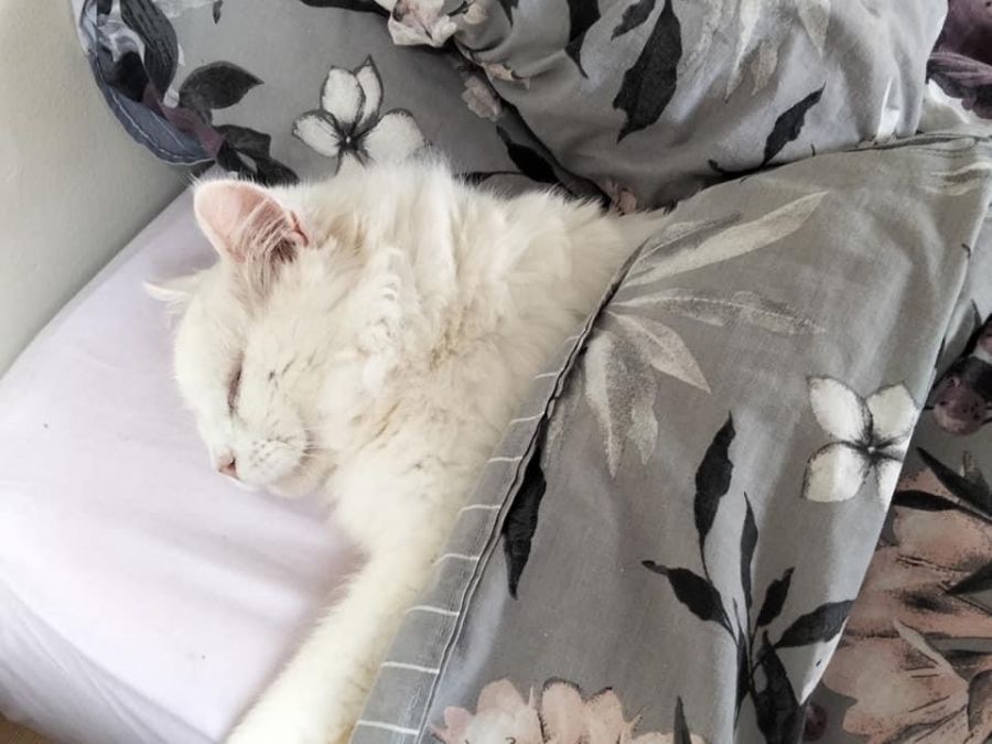 Alaska is completely deaf, which does not affect him in the slightest. This is one cat who isn't scared of a vacuum! Because of him being completely deaf and completely White he needs to be 100% indoor only cat