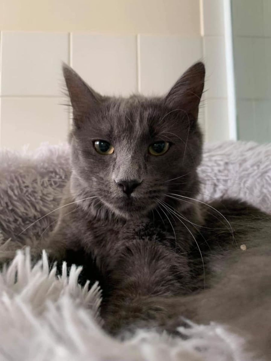 Gracie is a 7 month old grey domestic medium haired cat. She has a beautiful soft coat and a fluffy tail. She is an affectionate cat that loves to play with toys and run through cat tunnels. Her favourite thing is her fluffy bed and she purrs and kneads dough on it.