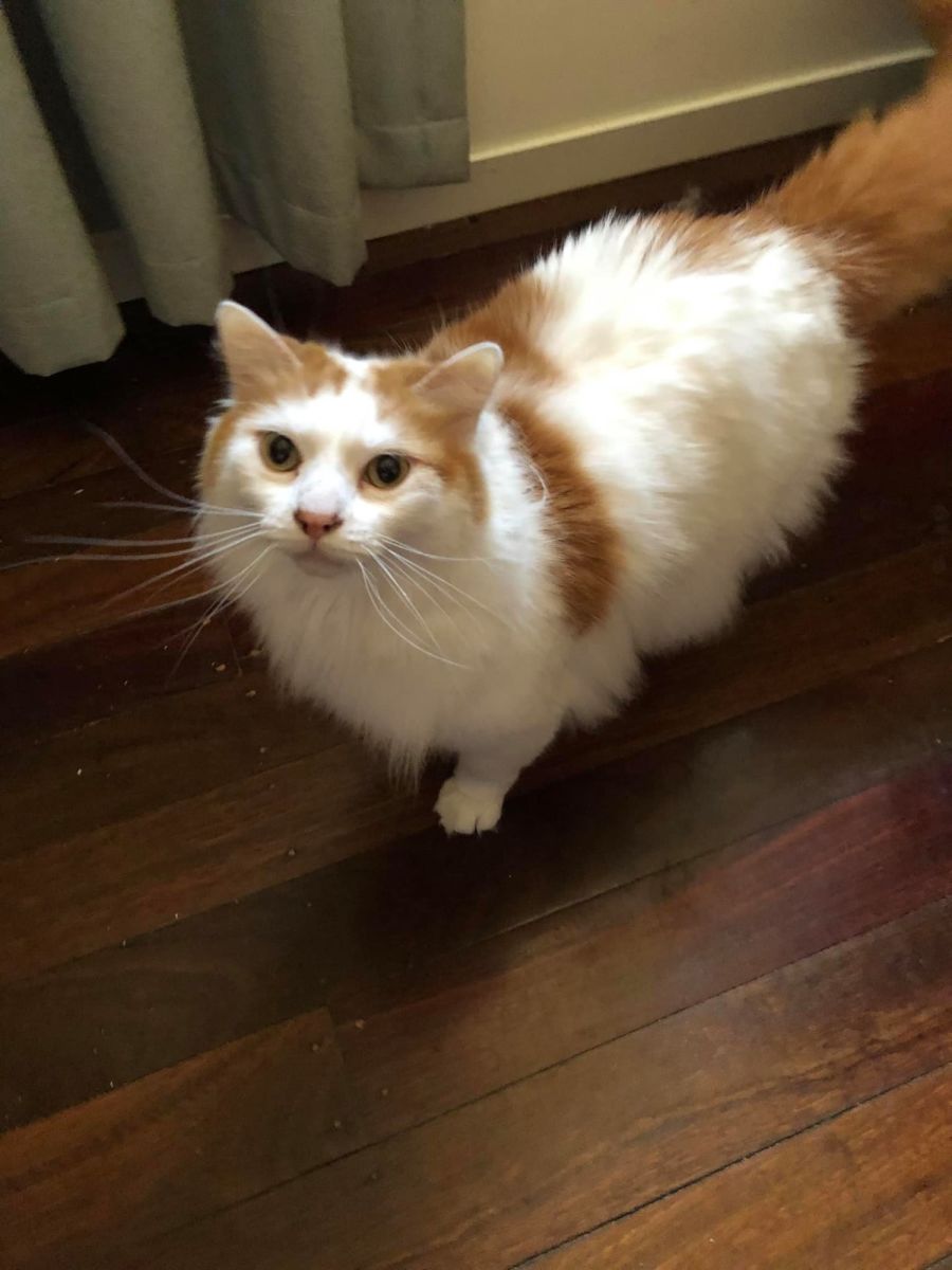 Charlie is one chilled cat. He loves the other cats and as long as the dogs don’t run after him he likes them too. Food and sleep are his favourite things.