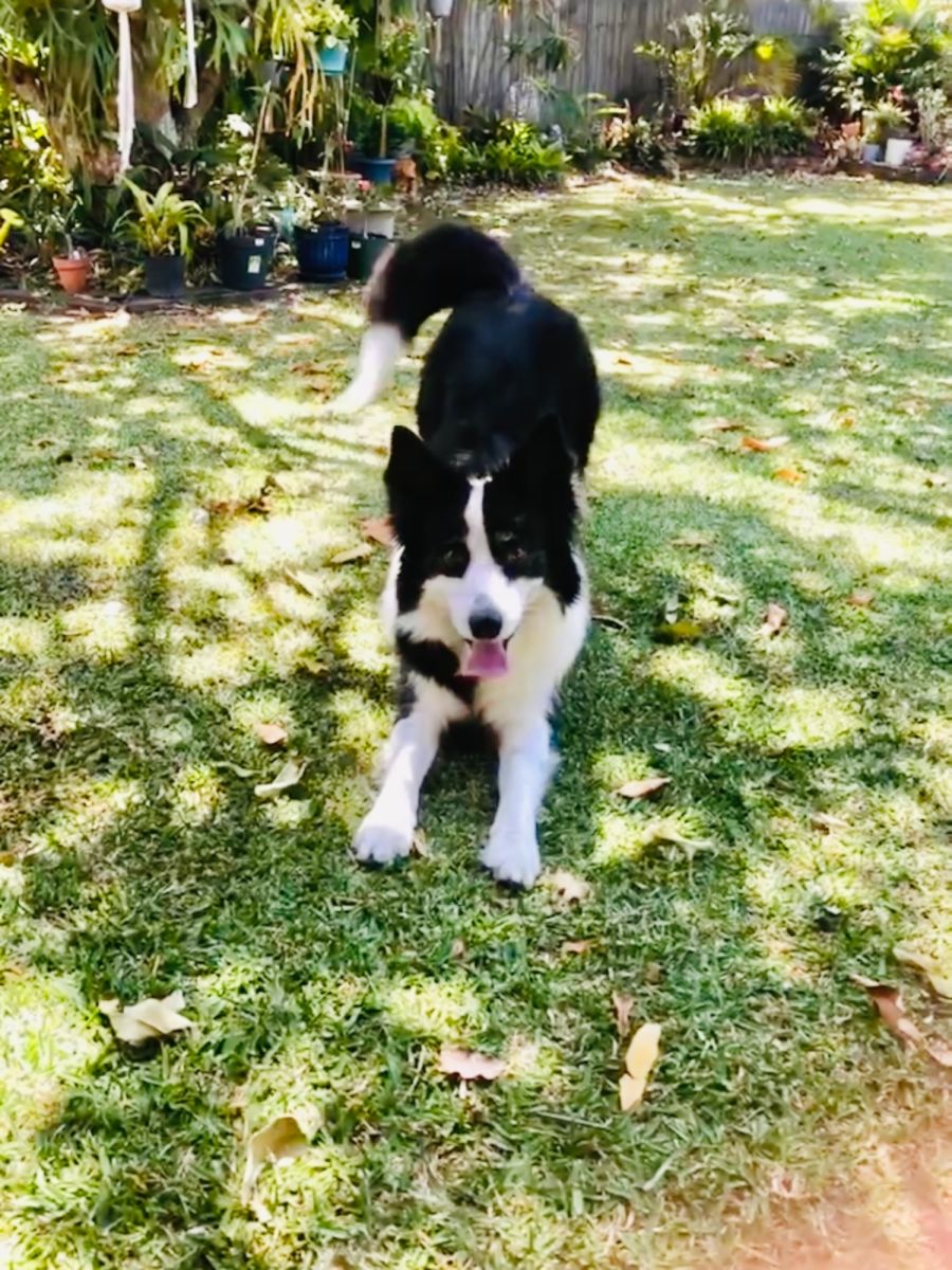 She is an absolute ball of energy, excellent on walks until you're walking past another dog and then she can be reactive , so we use alot of distractions …..for her its toys. She is very obedient, house trained and super loyal. She deserves the best home, more suited to someone with older kids- no toddlers, or kids that will get in her face, no other dogs. She likes all attention on her (typical border collie). She doesn't like the mower, whipper snipper or blower, but she can be distracted with toys and she will just run around like crazy with a toy in her mouth everytime you use them. Tell her to go get a toy and she will, tell her to sit, enough, get on her bed, she will. She would be very suited to an active person. Just typical requirements of a working dog- space, active lifestyle, consistency.