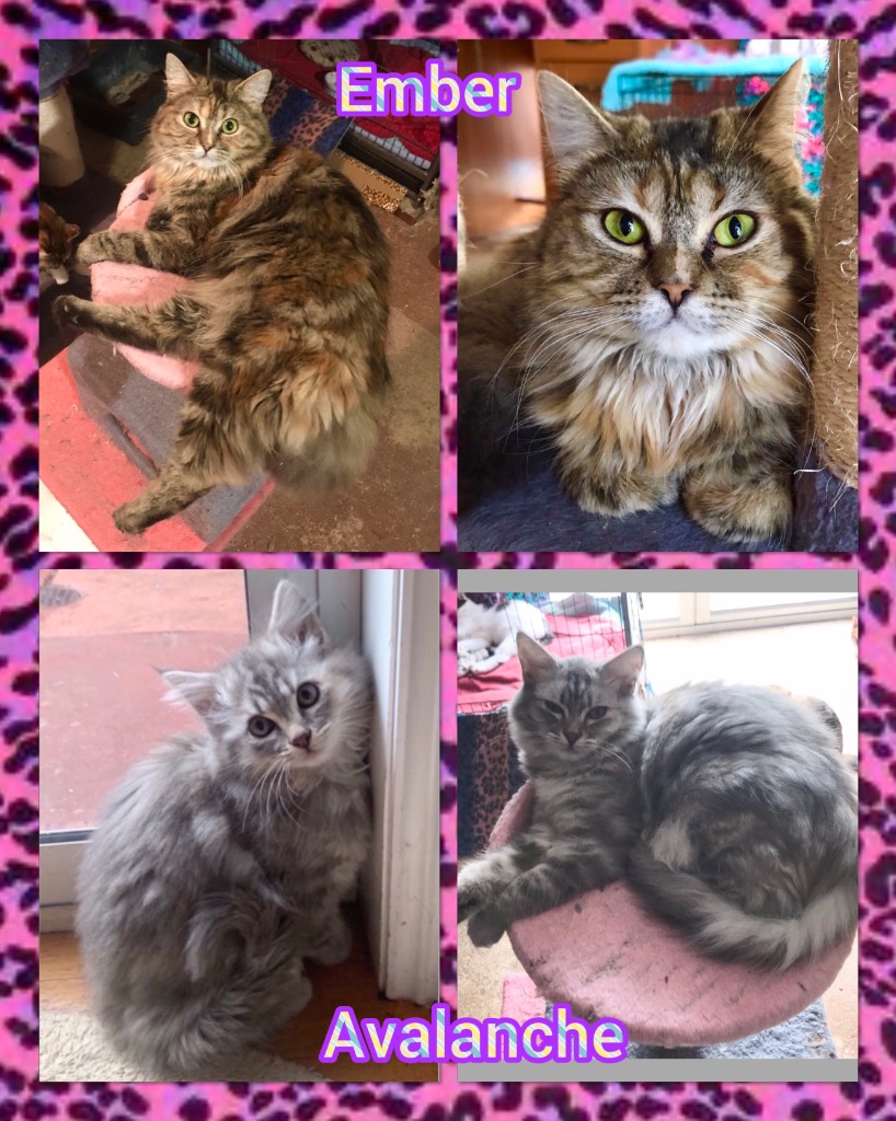 Ember & Avalanche, or Ava as she is fondly called came into our care after living as strays in someone’s backyard. They are “sisters from a different litter!” Their poor stray Mum had several litters before she was saved from the streets. Beautiful big fluffy tortie girl Ember is the older sister being 10 months old. She is more quiet out of the two, and loves to spend most of her day lazing about in the sun. She is gentle and sweet and loves soft pats and scratches. She is initially a little shy, but once you gain her trust her confidence will come out. Ava is the younger fluffy grey sibling at 6 months old. She is much more shy and will take a bit longer for you to earn her trust! She is very active and loves nothing more than chasing the laser light and playing with “da bird”. Both sisters have grown up with a variety of other foster cats and kittens so they are very well socialised. Both girls have been raised on a healthy raw fed diet and have had all of their vet work done including vaccinations, desexing, microchip, flea and worm treated.