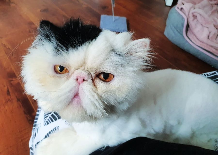 He is a fluffy ‘marshmallow’ who will need regular professional grooming as his persian coat is too much for him to keep up by himself. Luckily, he happily allows you to clean his eyes and will require it at least once daily to keep him looking handsome. While in care Puft has had a dental that has left his teeth shiny and clean, this will need ongoing monitoring as he gets older.