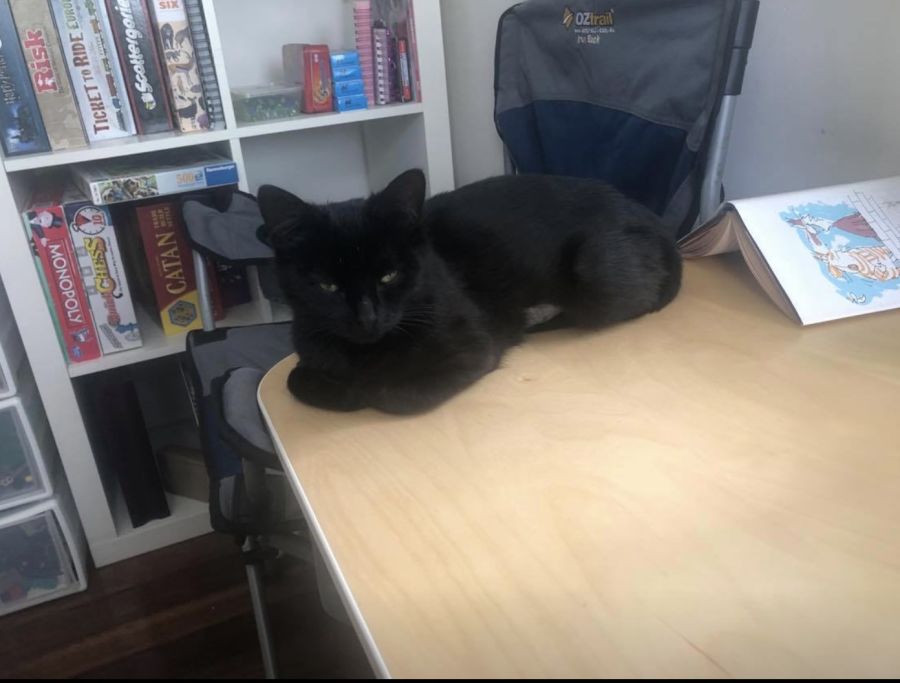 Coco Chanel is a beautiful, dainty, purring pure black 5 month old kitten. She loves feather toys, head scratches, and snuggling up next to the person supplying the head scratches. She is happy to help older primary children with their homework, by chasing the computer mouse when they move it fast in a circle. She also loves rubbing against her humans legs, and standing in front of the computer screen of a work from home adult, so they have no choice but to pat her. She loves it when you sit next to her, and give her a deep head scratch, and will generally let you nudge her onto your lap. She would suit home with older children or adults. She doesn’t mind a small calm dog, but would not be a good fit for a big rambunctious dog.