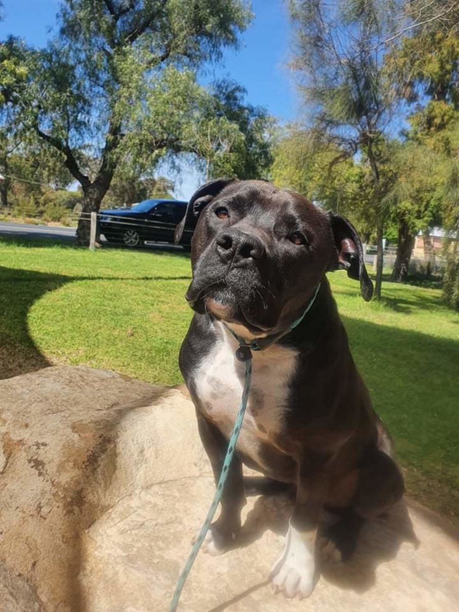 Bruno is a 2 year old Stafforshire Bull Terrier x Bullmastiff.
