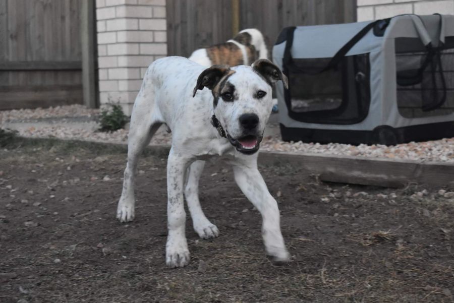 Friendly with: Dogs, Cats (does chase occasionally) and older kids (due to jumping)