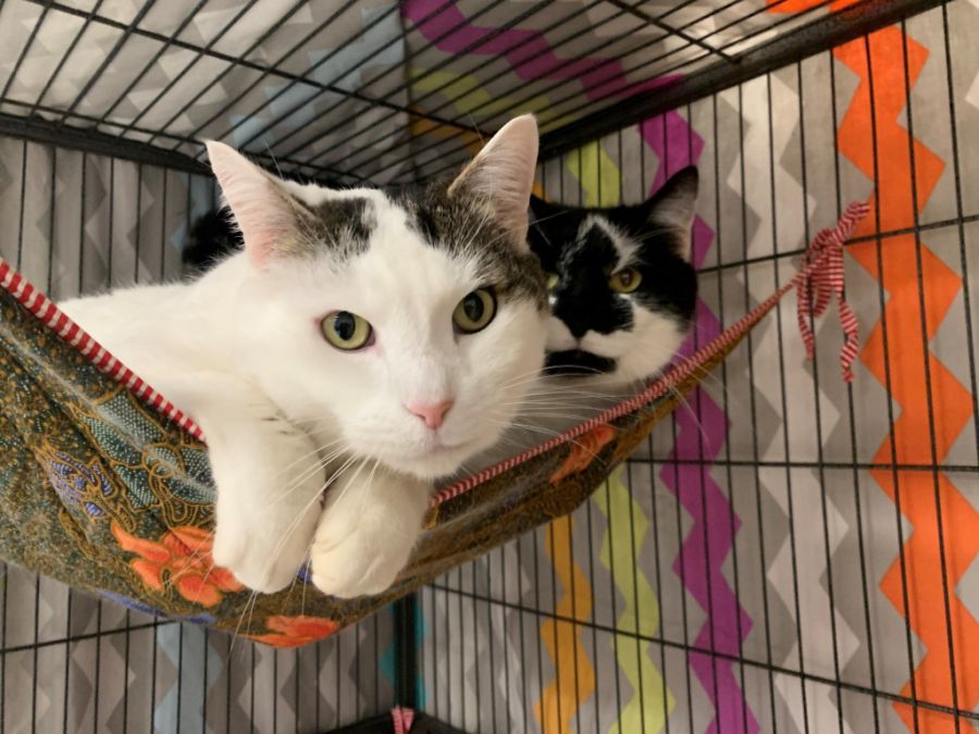 These two are so in love with each other! And in turn you will fall in love with them! Scat & Puss can be seen curled up & often paws around each other in their hammock whiling the day away. Brother & sister they are just over 7 years old & have been together all of their lives. They were rescued as kittens by a couple who love them dearly but their expanding family brought children who developed allergies and they had to make the hard decision to surrender these beautiful kitties.