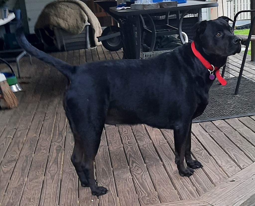 GYPSY #2778 is a very affectionate 6y2m female RottieX. She's smaller than a Rottie, more labrador size but she is needing to lose a little weight and find her waist again. Like labradors, she likes her food so she will need a sensible diet and daily exercise to help her trim down to a healthy weight. She would love to be a lap dog and will sit next to her human all the time. She has a nice temperament, meeting people and dogs appropriately with a waggy tail. She has been used to children and loves to have a good romp with another playful dog. Gypsy needs a sturdy fence and secure gate to keep her safely at home. She is untested with small animals and chooks but has been in care with a 2kg female dog and showed no interest in chasing wallabies that bounded by on our walk. Her coat is black but in the sunlight you can see the tan around her face and back legs. She would love to find a constant companion and she is house trained and travels well in the car.