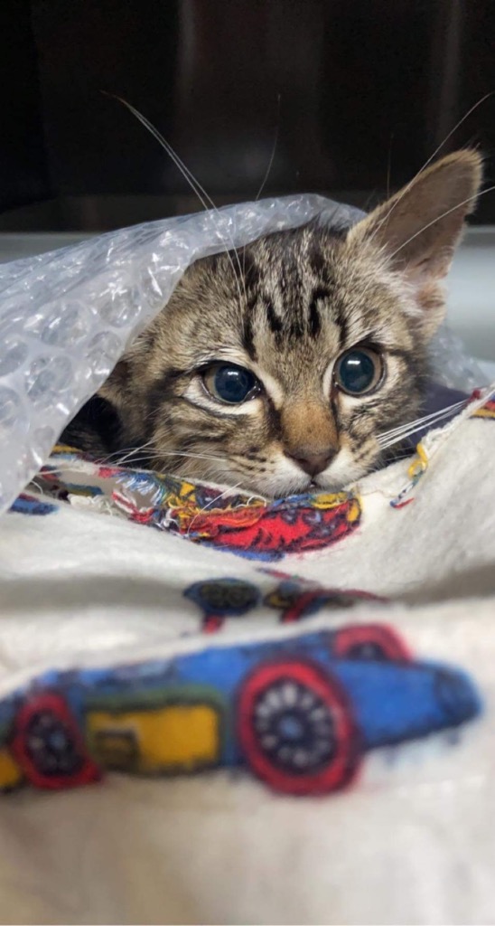 Meet the cheeky Yoshi - an 8 week old bundle of fur and character - with 3 legs!!! Yoshi is learning to navigate his new life on three legs and will adjust in no time - it certainly isn't slowing him down or stopping his curiosity. Yoshi is in care with a litter of younger kittens to keep him social.