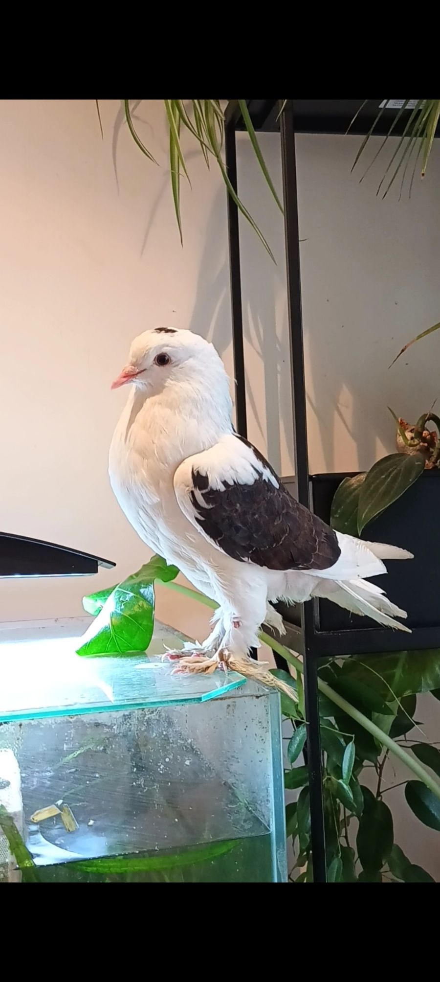 Photo of set-up required for adoption. https://www.pigeonrescue.org/2015/09/30/is-this-a-good-cage/ is a good resource for planning a cage. We're happy to advise on best cages.