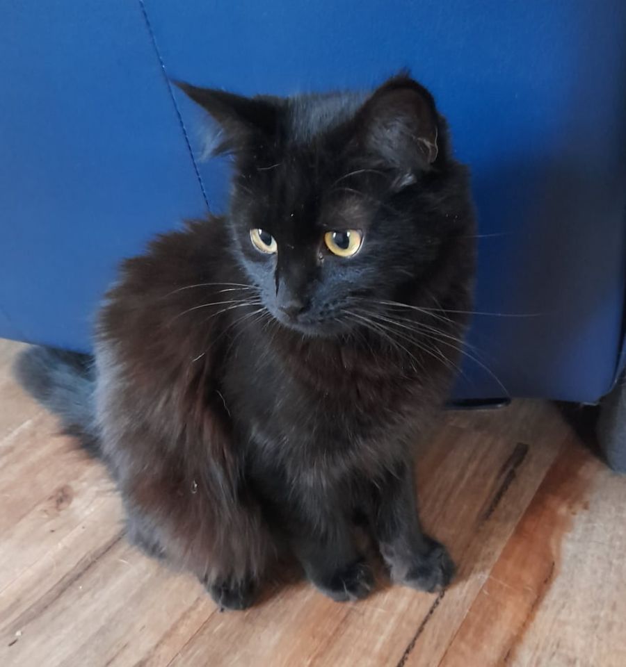 Topaz is a big ball of energy! She LOVES to play and she really likes doggy friends! She is affectionate and happy to be picked up and cuddled. Topaz is looking for a home where she can be the only cat in the household but would like to have a dog friend preferably one with previous cat experience, that she can play with and cuddle up too. She requires regular brushing to keep her medium length fur nice and fluffy which isn't a problem as she loves any kind of attention.
