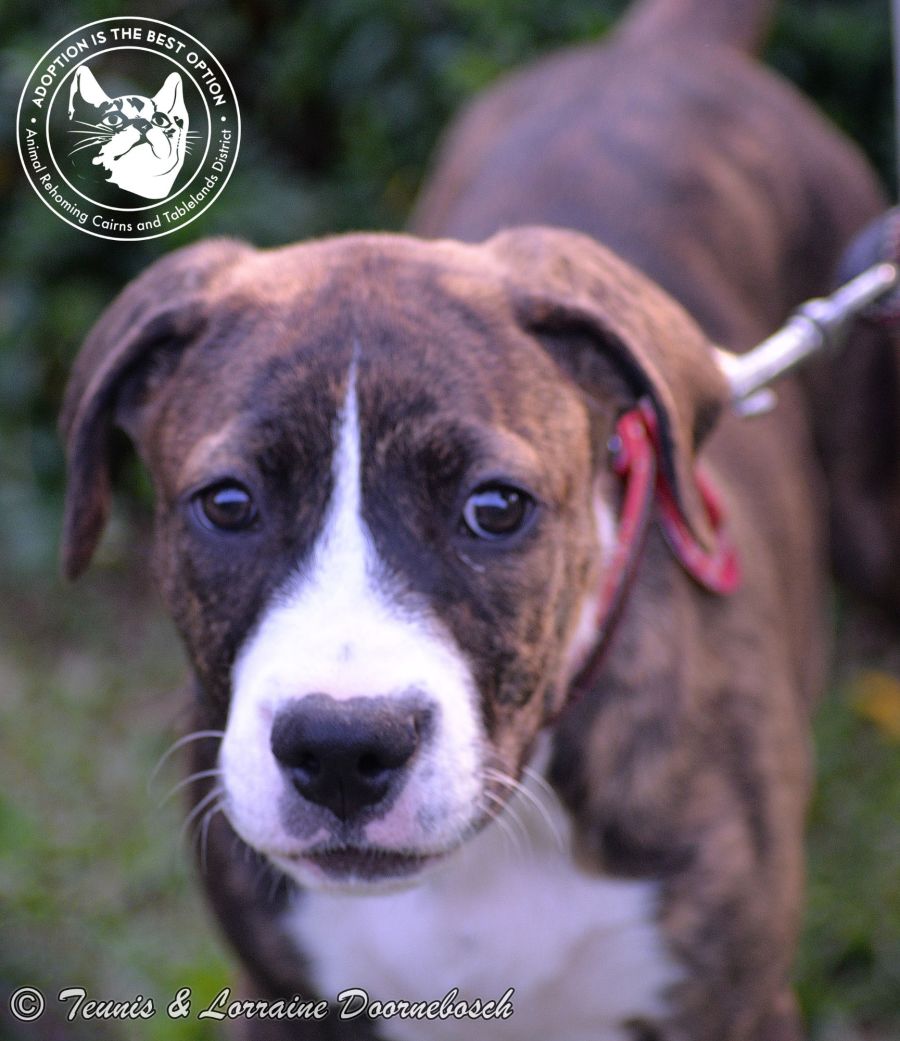CASSIE is one of four puppies surrendered to our local council and taken into care. We can't tell you what breeds they are but they are going to grow up to be very big kids. All four puppies have lovely, friendly natures and are typical big goofy types who just love everyone and each other. Training is essential and puppy school is highly recommended. Cassie is a very confident puppy and her siblings follow her lead a lot. She's happy to share food bowls, toys and even bones. All she wants to do is play with her siblings and get cuddles and attention from her humans, whom she simply adores being around.