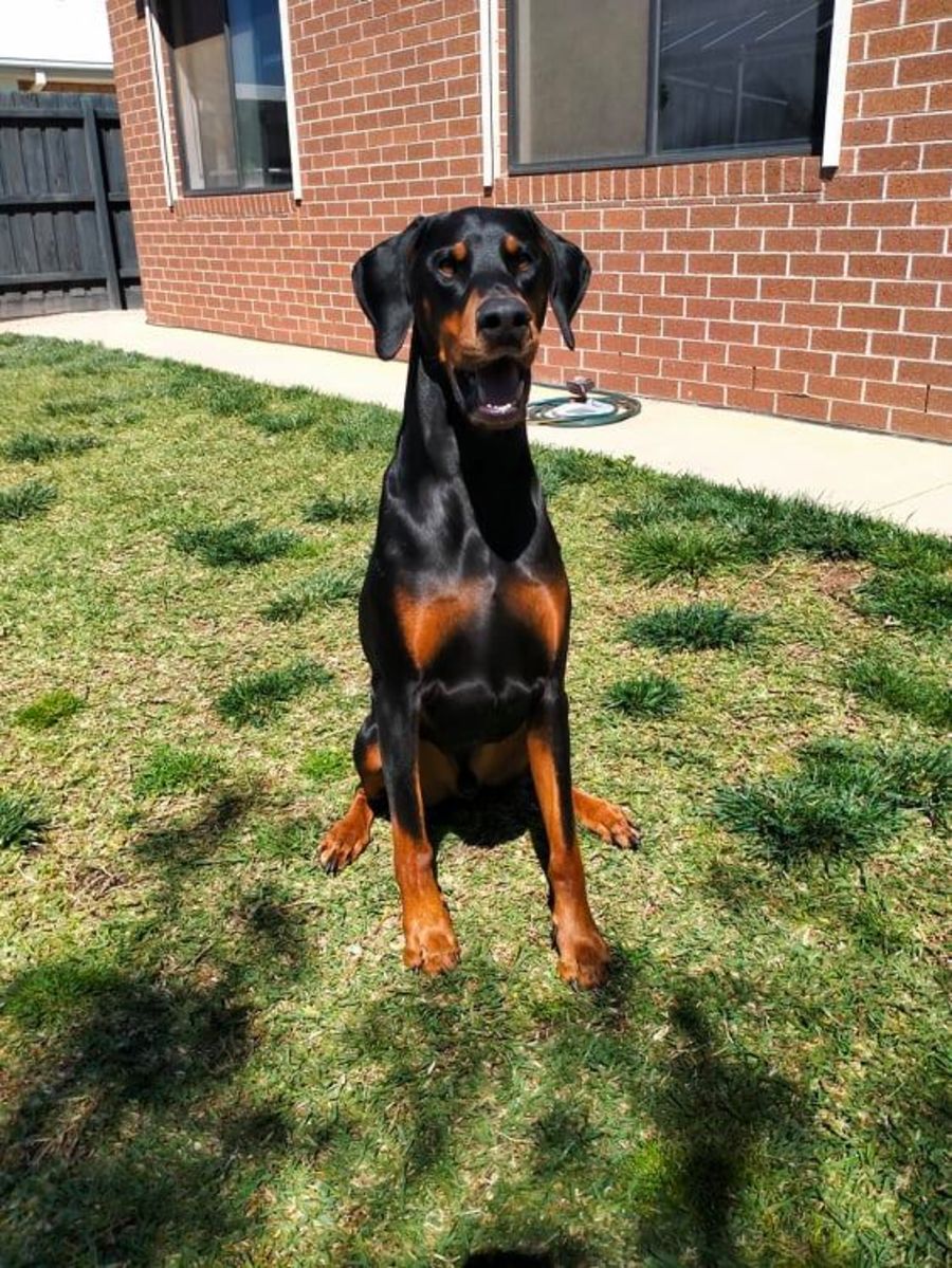 He is an outside/inside boy, while fine outside he would need to sleep inside at night. He'll find his feet fast in a new environment typical to most Dobermanns. He is available for interstate adoptions, with conditions of adoption due to the health directorate restrictions.