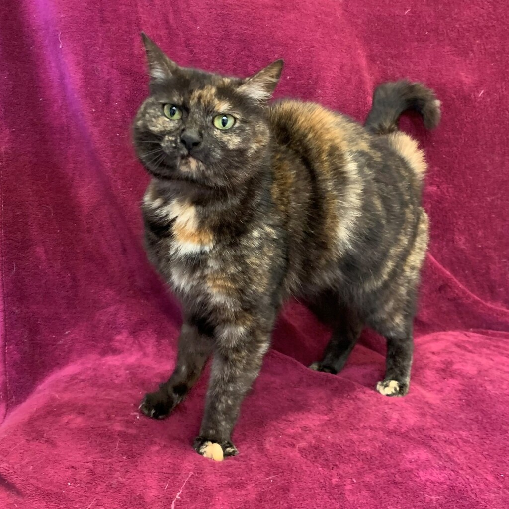Amber is the most stunning looking black tortoishell girl who purrs of pleasure never seem to Cease. This affectionate girl would thrive with a family who has as much love to give as she does.