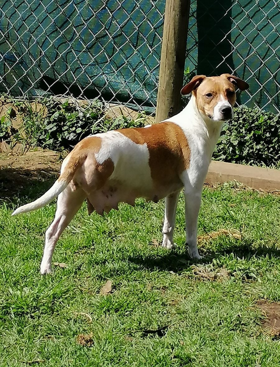 Lilly is a taller tan and white mixed breed aged around 2yrs.