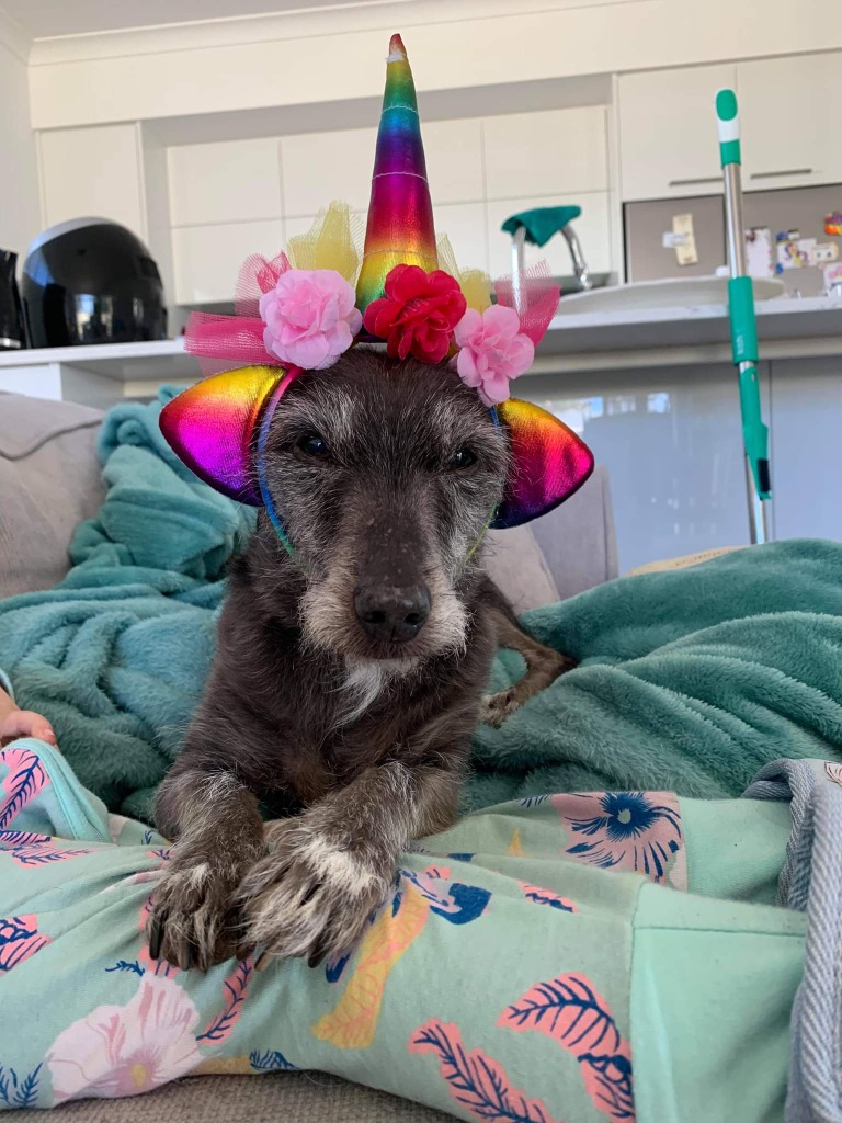 Dexter is pooch perfection. He loves everyone. He's friendly with kids of all ages and, as you can see, even tolerates being involved in dress ups.