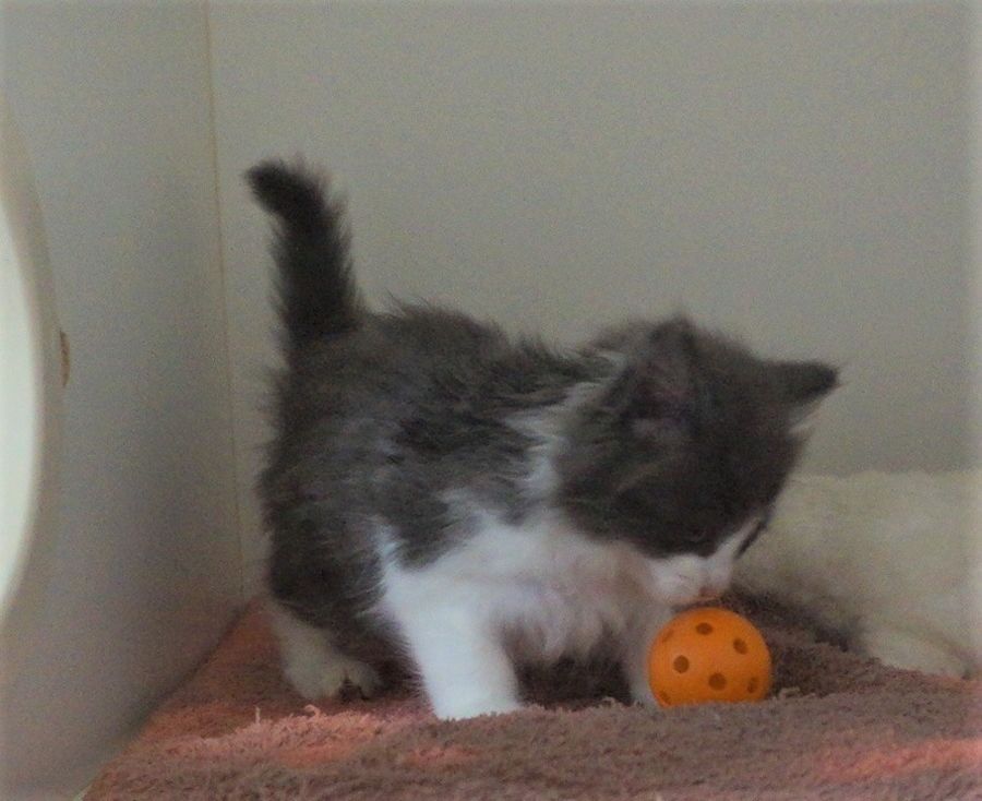 Charity is a blue and white beauty - semi long hair so will need some regular but not intense brushing.