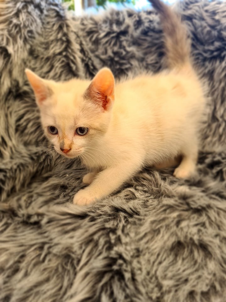 Cappuccino is the smallest of the litter, she makes up for her petite size with the biggest set of lungs. She likes to ask to speak to the meownager and dissolves into purrs when she's picked up so she can have all the kisses.-