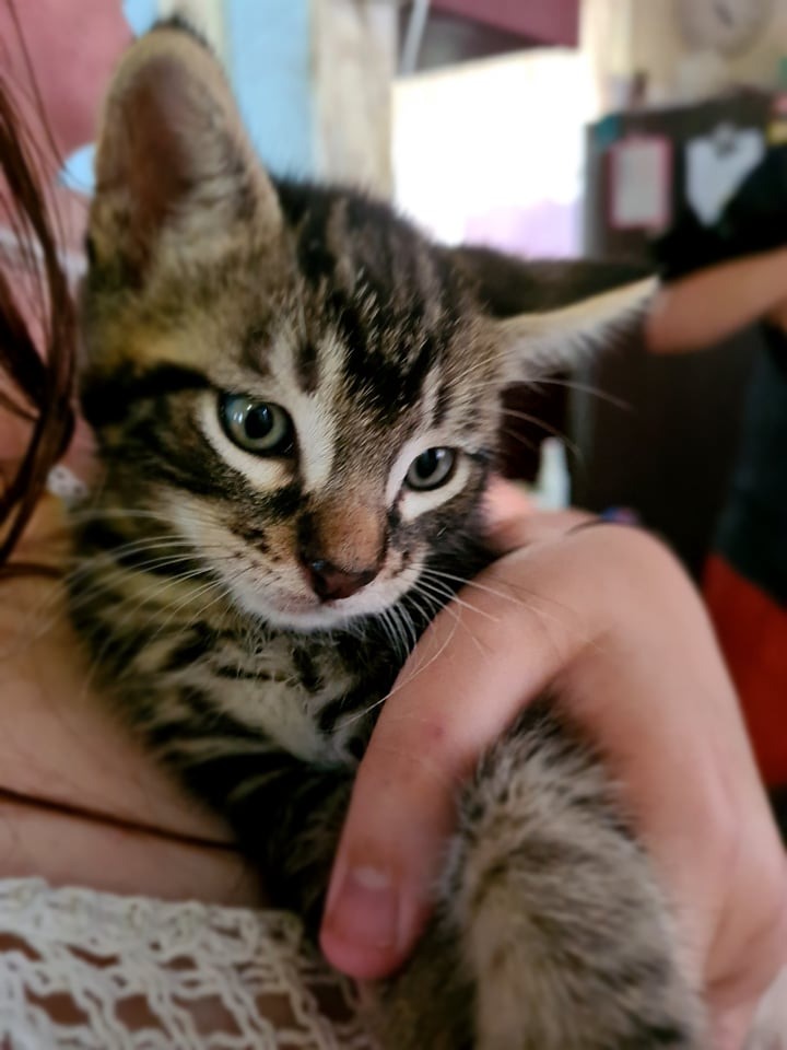 August likes to get human attention with the use of his meows. Although also a swirl tabby like his brother, Henry, he has a distinctively different face. He will grow up to be a beautiful boy to keep you company.-