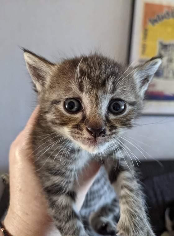 Meet tabby Sasha - these babies came into the world when mumma Babushka gave birth on a strangers back steps.. We scooped them all up - Babushka was not chipped and no one came forward to claim her. These teeny babies struggled and have fought for their lives - Mumma was so unwell and not producing milk and declining in health herself - a quick emergency trip to the vets and some fluids and antibiotics for mumma helped her produce some milk and keep her babies alive. Her carer has supplemented mumma's efforts with a bottle - but these babies are still quite thin. They have now moved onto solids and we hope this will fatten them up!