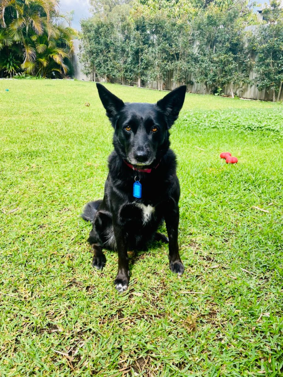 What a terrible run of bad luck this sweet girl has had. She has been out in terrible situations, through no fault of her own , which nearly resulted in her losing her life. Fortunately we were able to get her out of those situations and she is now safe in care. Once this happened we got to see the sweet relaxed girl she is. Just happy to have a soft bed and a warm dinner. Alex lives walking and is beautiful on the lead. She is well behaved and well mannered and house trained, preferring to sleep inside. She’s not a fan of other dogs annoying her and happy to be the only pet, this is our preference too. She has the most amazing glossy coat and a cut small head, typical of the “bench” Kelpie.