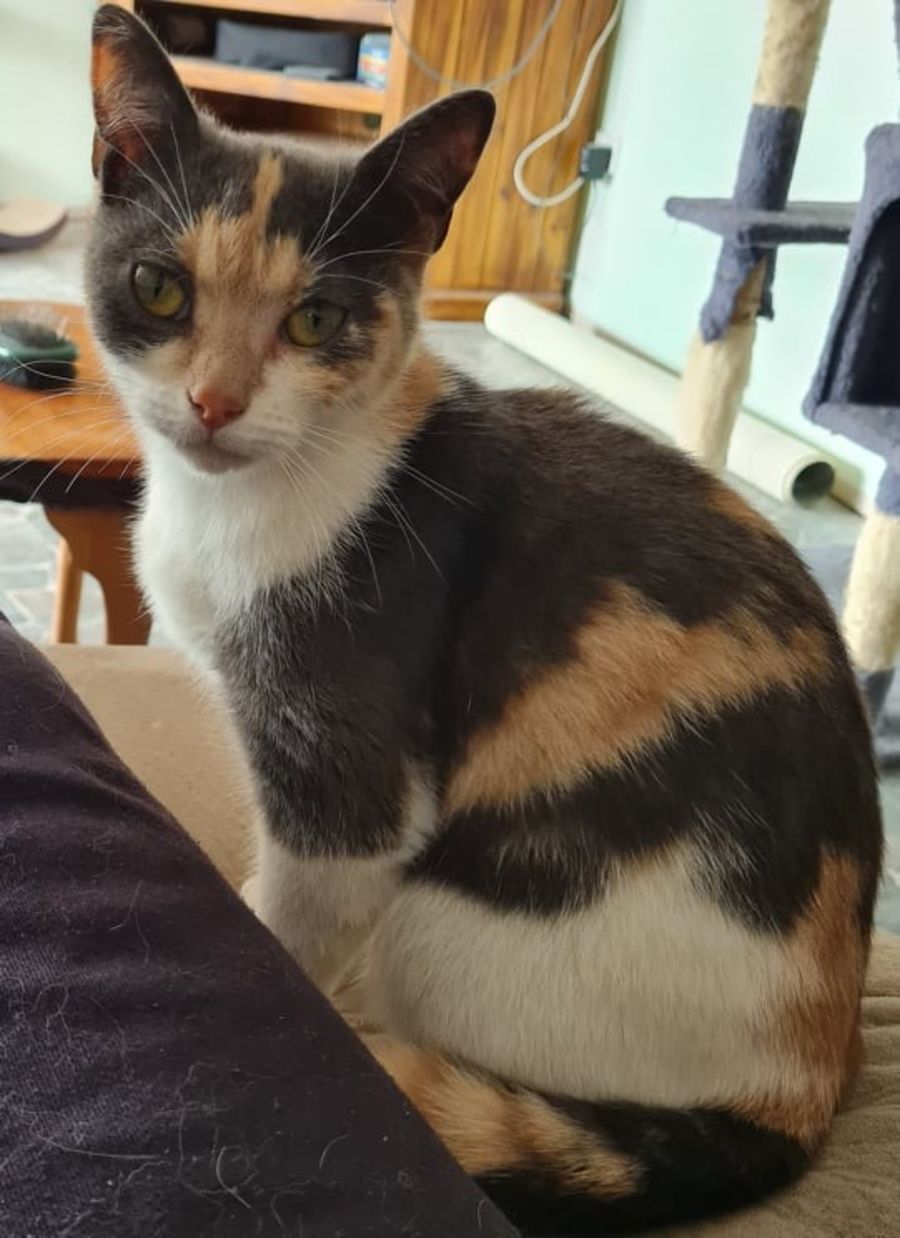 Lola is a sweet, pretty little girl who just loves attention. She is a bit of a chatterbox and has cute little chirpy noises when she is playing. Lola is a bit shy when meeting new people but when she gets a little comfortable she gives you all her love and attention. She will need a little time to know that you just want to love her. She is still a kitten and loves to play with her toys especially ping pong balls and laser. Her favourite place in the evenings is on the lounge beside her people and she will usually share her love around going from one to another. She has clicked with her foster brother but not her foster sister so may be best as an only cat or with a male. She is very curious about dogs and gets very up close and personal.