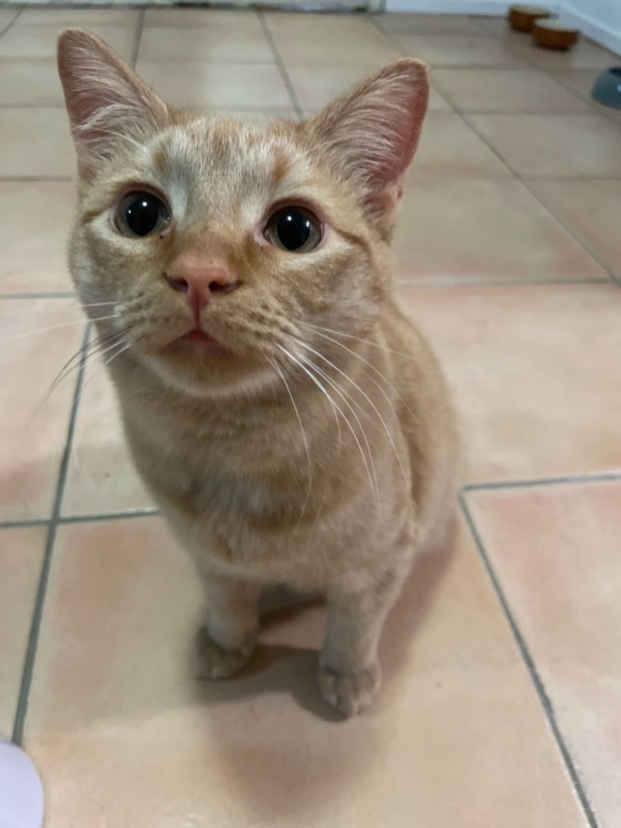 Crunch is the sweetest big ginger kitten you’ll ever meet. He’s only 10 months old, but looks more like an adult cat. He has velvet soft fur and loves lying next to people and rolls around and purrs for a tummy scratch.