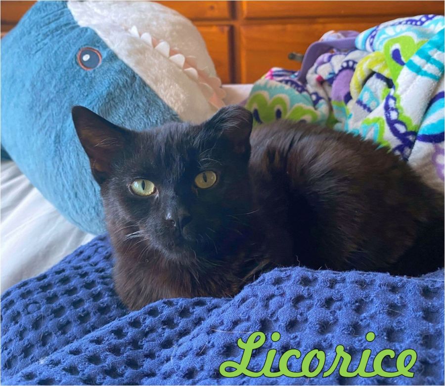 This delightful four-month-old kitten is now ready to find his permanent home. He has shiny jet black and wine-red fur with striking amber eyes. Although he is shy and quiet, he will enjoy the company of other cats when he gets used to them. He can be found sleeping on his bed during the day but, during the night, he likes to find a cat buddy to snuggle up next to. Licorice even likes play wrestling with other cats. Having all the curiosity of a kitten, he enjoys his feather duster, toy balls and scratching post. For one so young, he has good concentration skills and will chase after his playball for a long time. He is often more playful at night-time.
