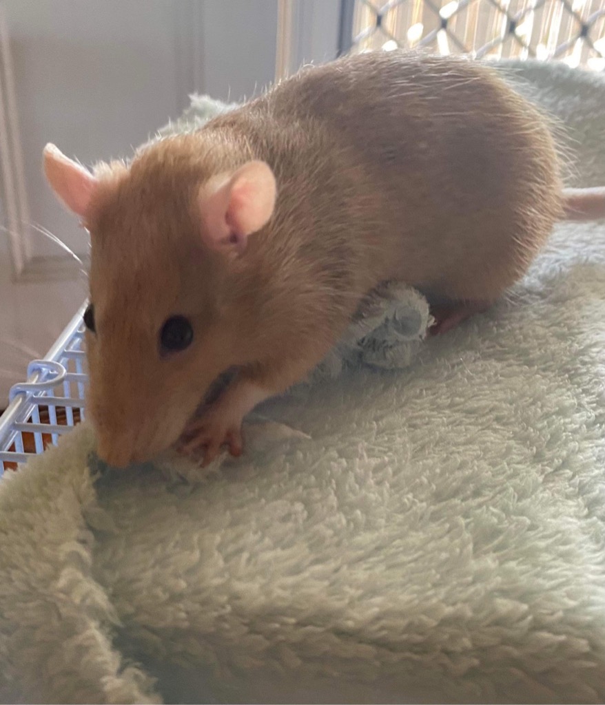Hi Our names are Lee Lou (white) and Latte (caramel) and we are bonded sister rats. We are very friendly, cuddly and sweet and love to play. We are looking for a loving and happy new home who can spend lots of time with us. We also come with our cage.