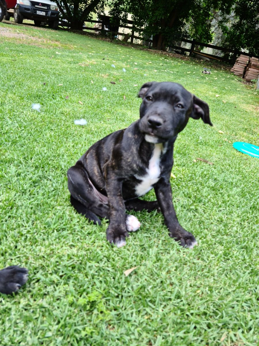 This little staffy x girl is very talkative.