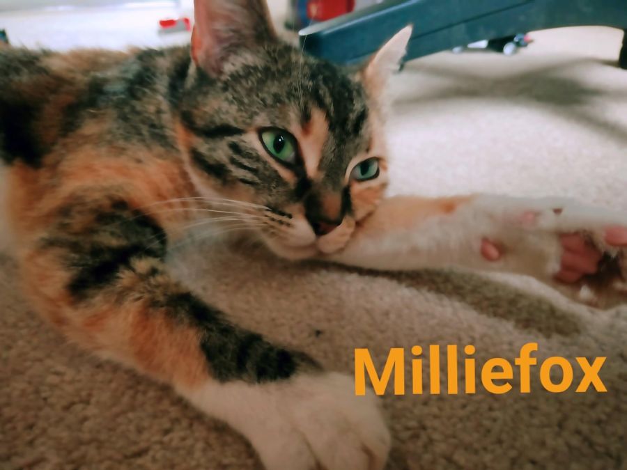 Milliefox is one stunning girl with the cutest little face. Milliefox was found at a playground with her two kittens. She is only a kitten herself at 11 months old. Milliefox is extremely friendly with humans of all sizes, is playful, waits patiently for her food and snuggles next to you. She often likes to just quietly sit in your company.