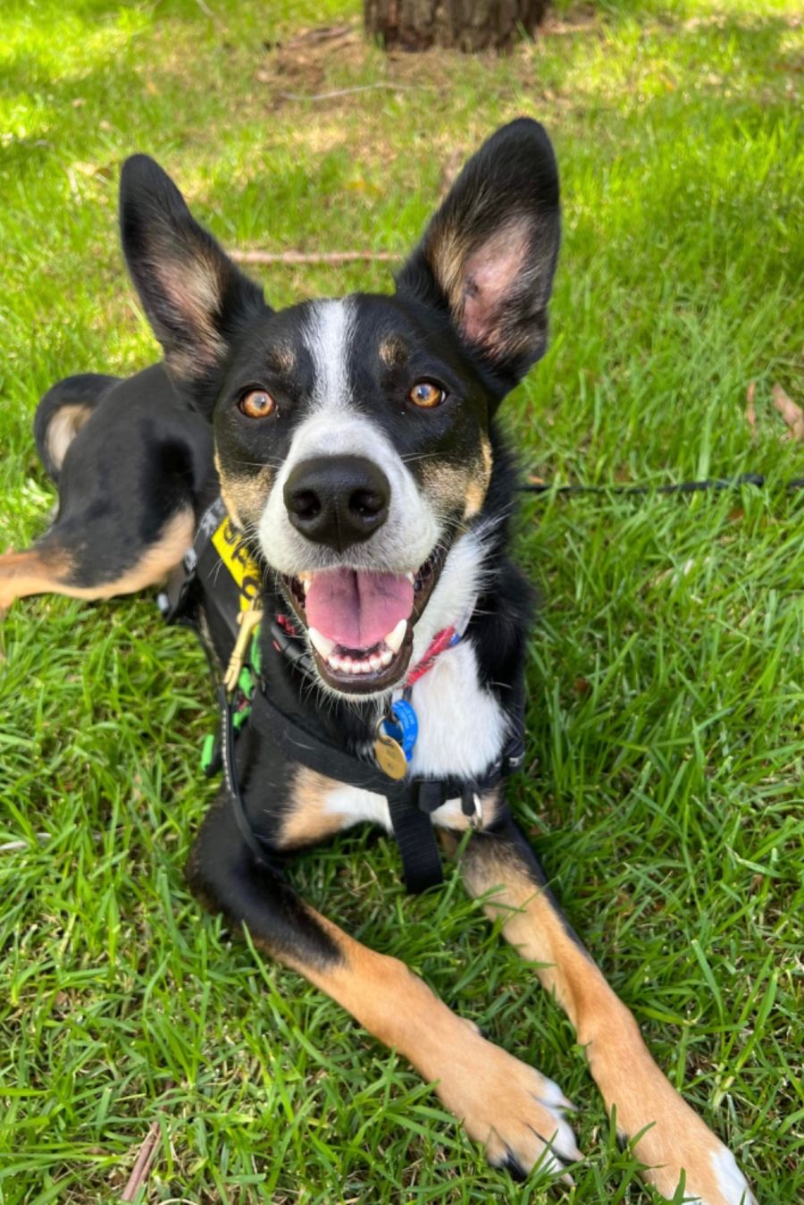 I’m a pretty smart little doggo and I love learning new things and using my brain and my nose to keep me busy. I am silly and playful at home but am also happy lounging around in my bed like the goodest boy ever. I like to lean my head on my foster mum’s lap and loveeeee to sun bake while they work. My absolute favourite thing to do is fall fast asleep on my back with my legs in the air. It makes my foster mum and dad laugh every day which makes me happy!