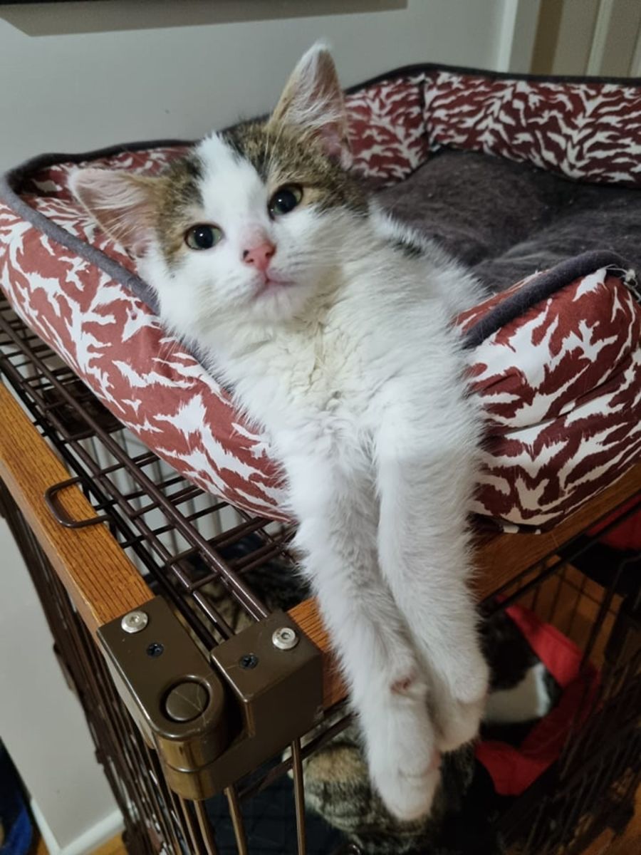 LB is such a funny, friendly little kitten! He is so fun to watch and play with, he loves tummy rubs and especially loves his food and is growing into a really affectionate young boy. He is used to living with other cats of all ages and sizes, so he would be happiest living with another kitty friend, one who would match his energy! He is not super fond of being picked up, but he is very loving! LB would prefer to live with older kids or adults only as little ones can spook him easily. He has no experience with dogs. He is a classic, happy, playful loving little kitten.
