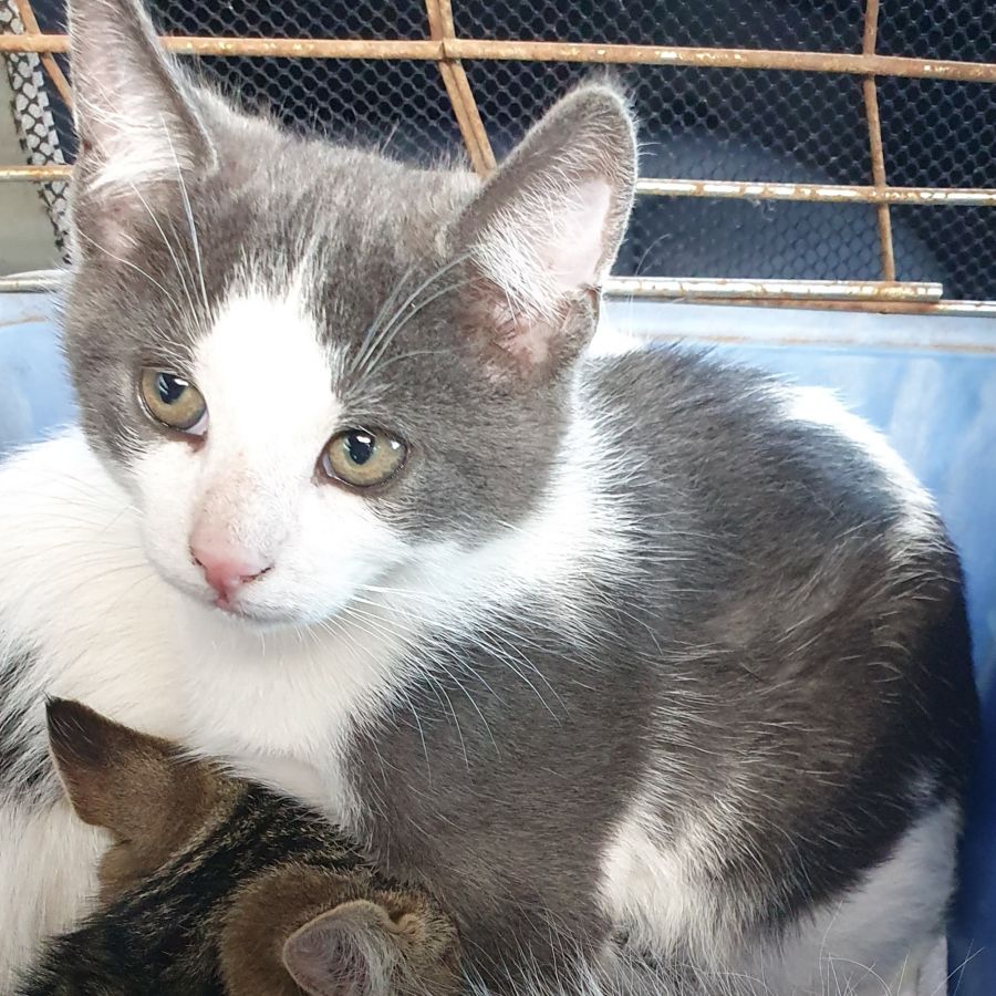 His mum was a stray and taken in by a kind person who took care of her and her babies.