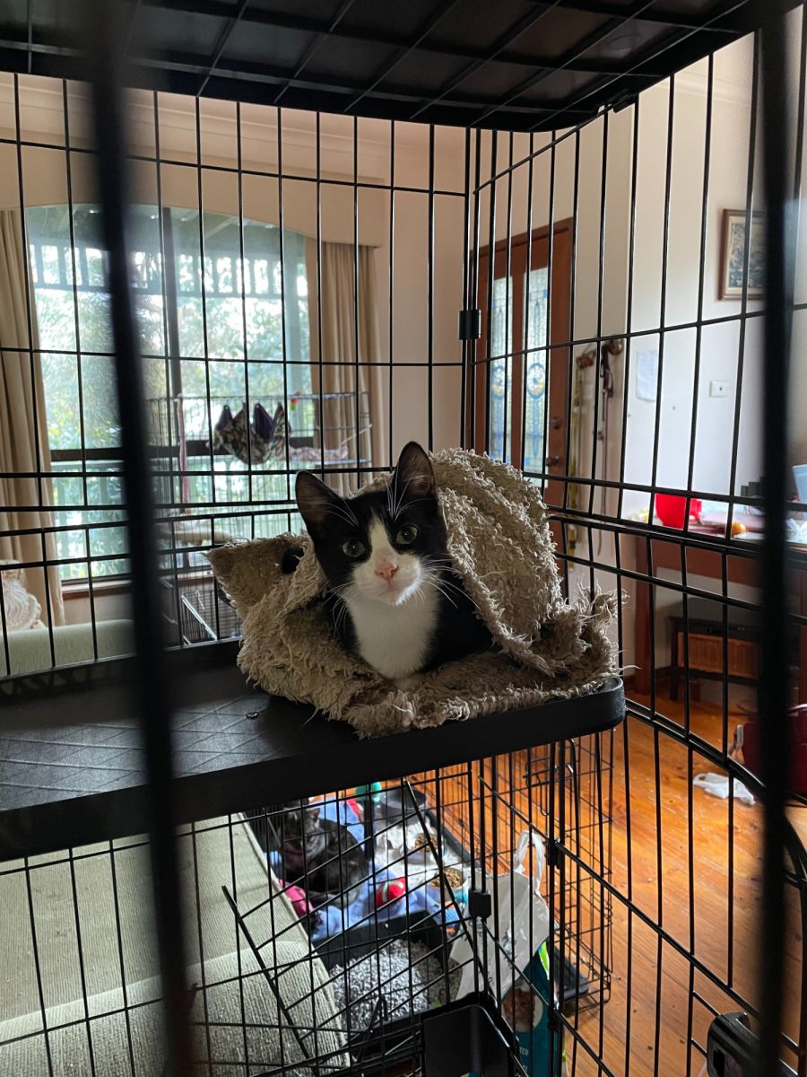Pussyfoot is a beautiful tuxedo wearing kitten. By day she’s a playful kitten, by night she’s a ninja warrior. Pussyfoot had a tough start coming into care with only her brother but that hasn’t stopped her from blossoming into a beautiful and confident girl. Pussyfoot is a sweet girl who loves to play but will stop to have a cuddle when she’s finished playing.