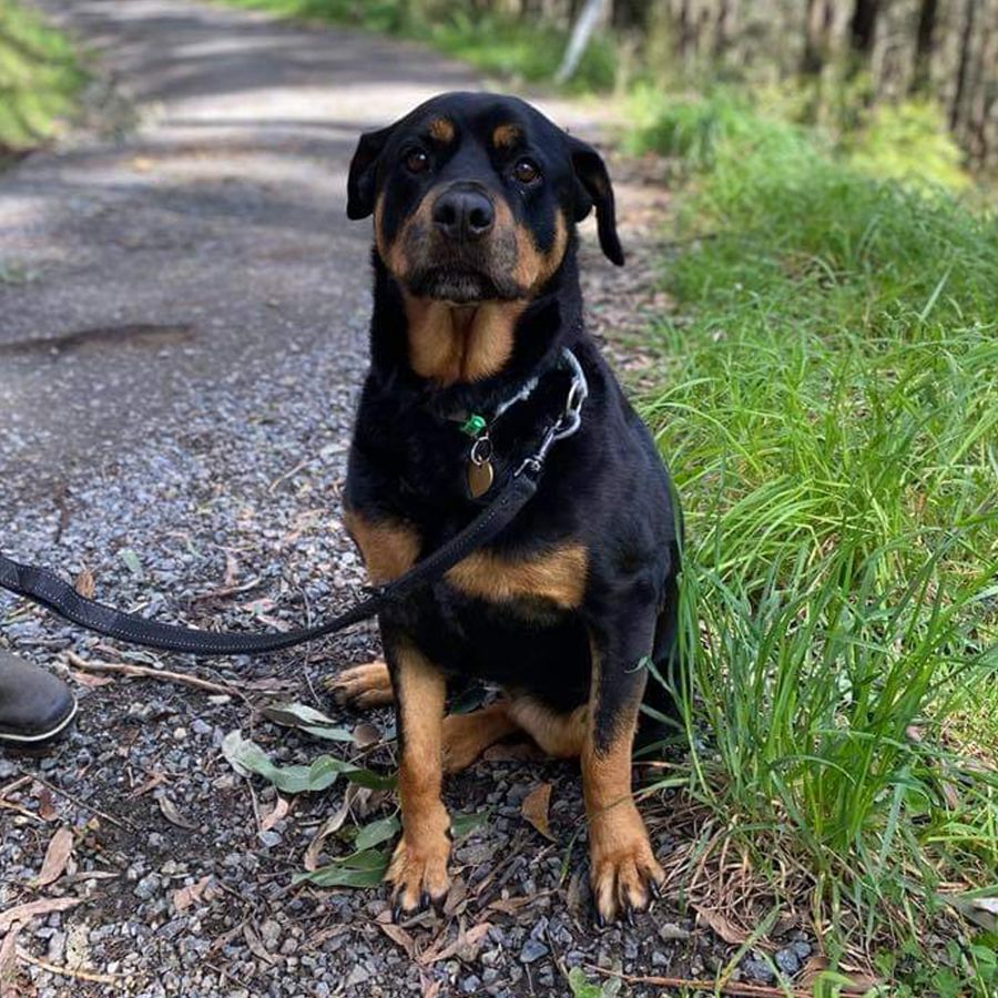 Lucy is a sweet, loving and cuddly bear-like doggo with a lot of hugs to give. She's a rotti however on the smaller side, kind of like a thick lab. She’s good with other dogs and has great recall. Lucy loves rules and is very obedient and willing to learn and listen, in fact she loves to have a job but is also, very keen to just chill and be great company. However Lucy isn't a cafe dog, she doesn’t like sitting at cafes or pubs, or busy areas, as she feels like she needs to guard the place and her people. Lucy prefers to relax at home or in a park with lots of open space and somewhere not too busy. Her natural element is at home, in the yard, with her people, sunbathing and enjoying nature and peace – she’s not going to be a big city type of cafe dog.