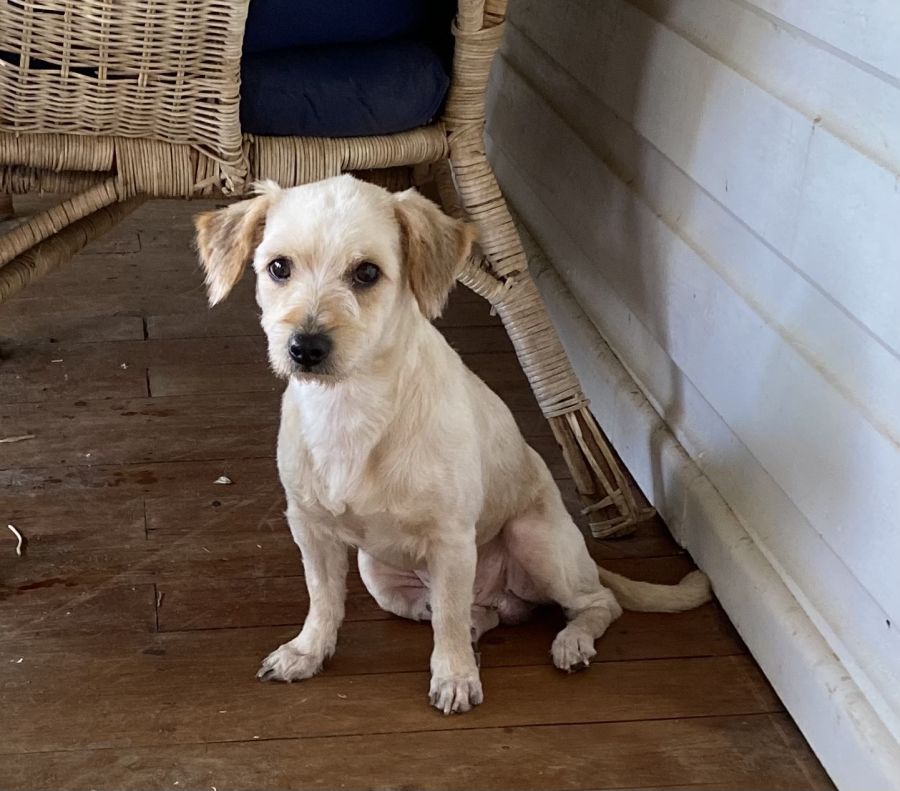He arrived one of the most timid dogs I have seen. Absolutely terrified of everything, and has needed lots of time on his own terms, to de-stress, mostly under a chair on the verandah.